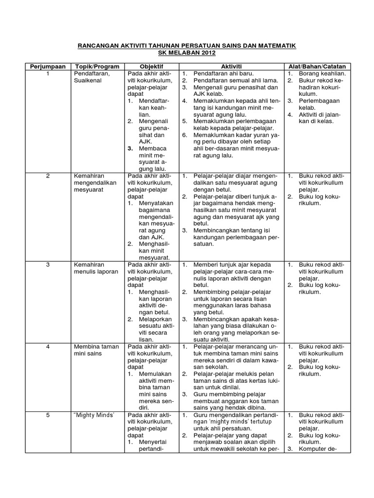 Rancangan Aktiviti Tahunan Persatuan Sains Dan Matematik Pdf